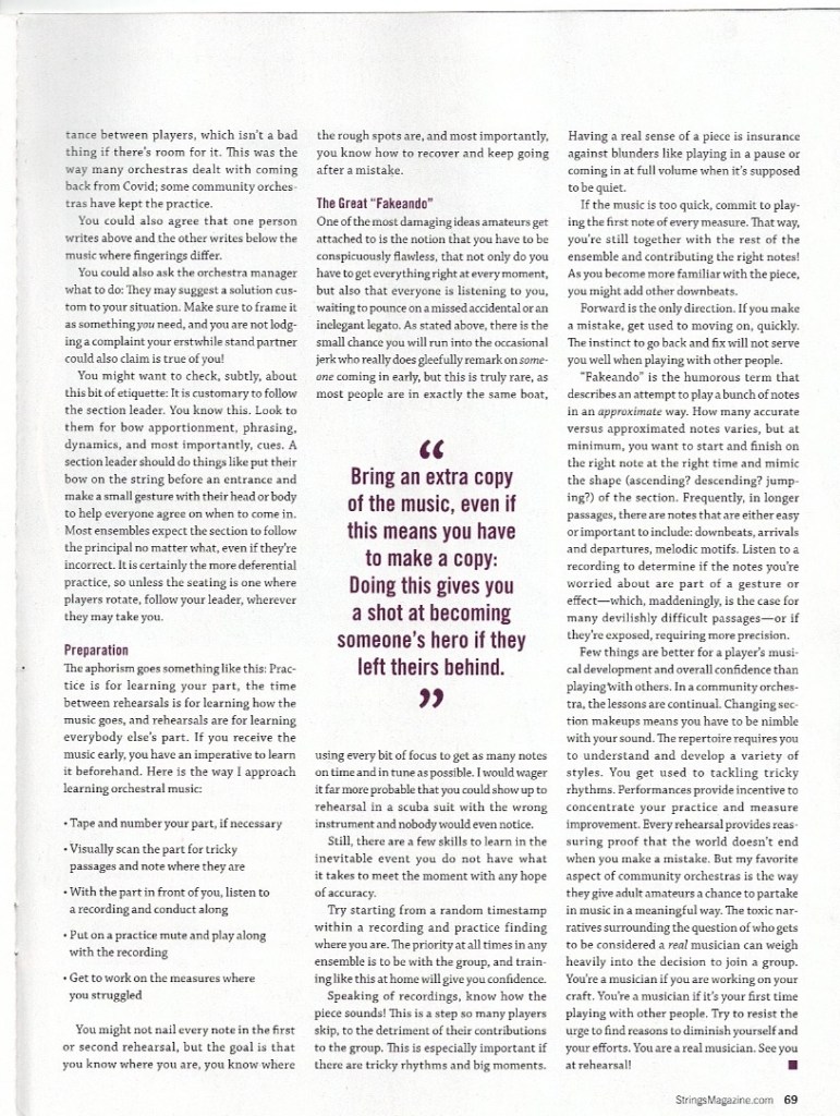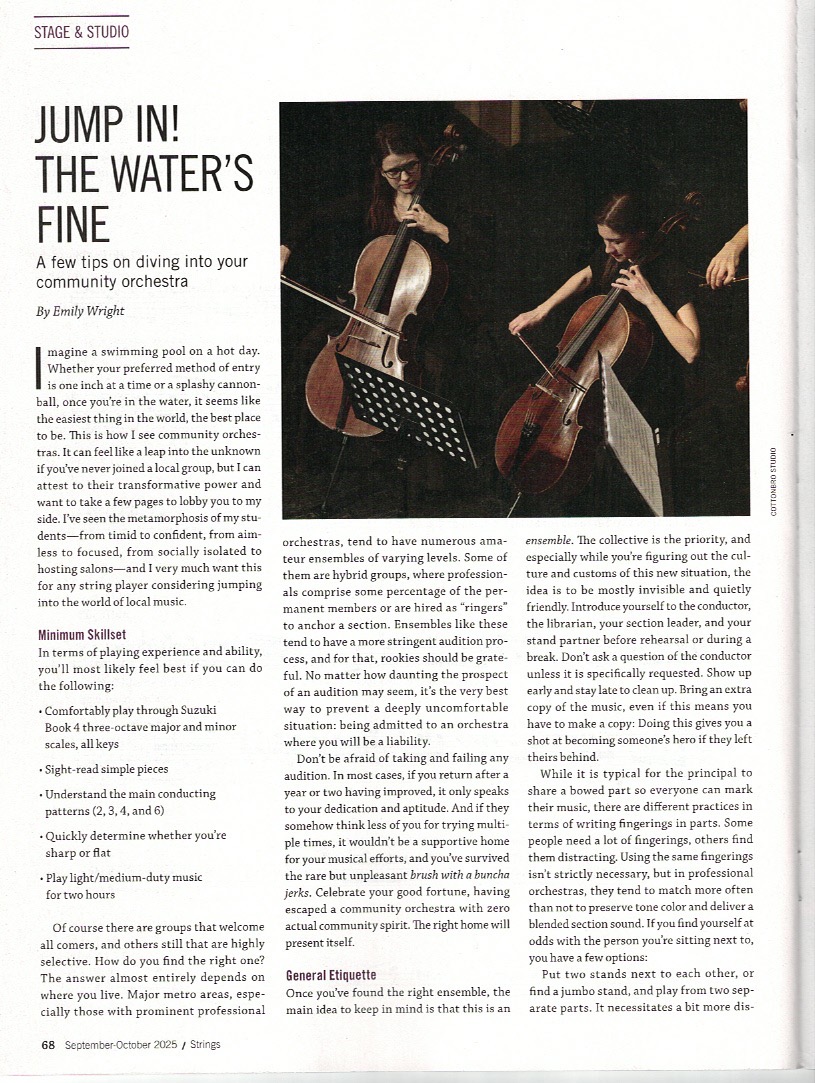 Great advice from this month’s Strings Magazine about how to prepare for playing in an orchestra, and basic expectations and etiquette. This is written about community orchestras but applies to youth orchestras too!